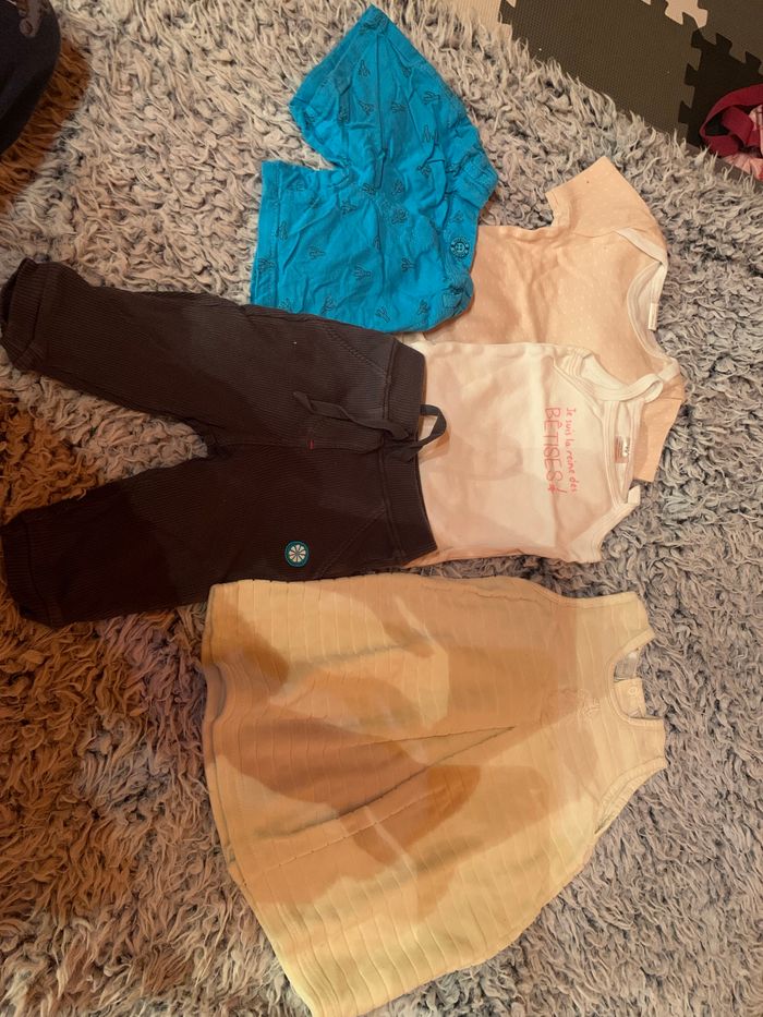 Lot bébé fille 9 mois 1 body bretelle 1 body manche courte 1 pantalon 1 short 1 robe velours