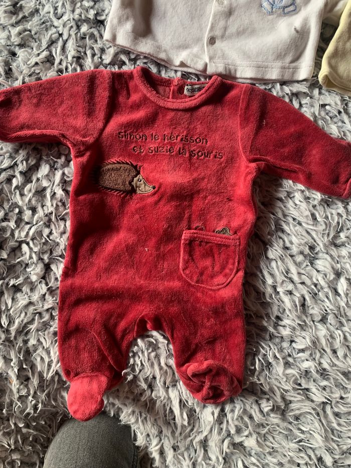 2 bonnets 1 gilet velours sans marque 3 pyjamas velours Disney, tape à l’œil, baby wapi