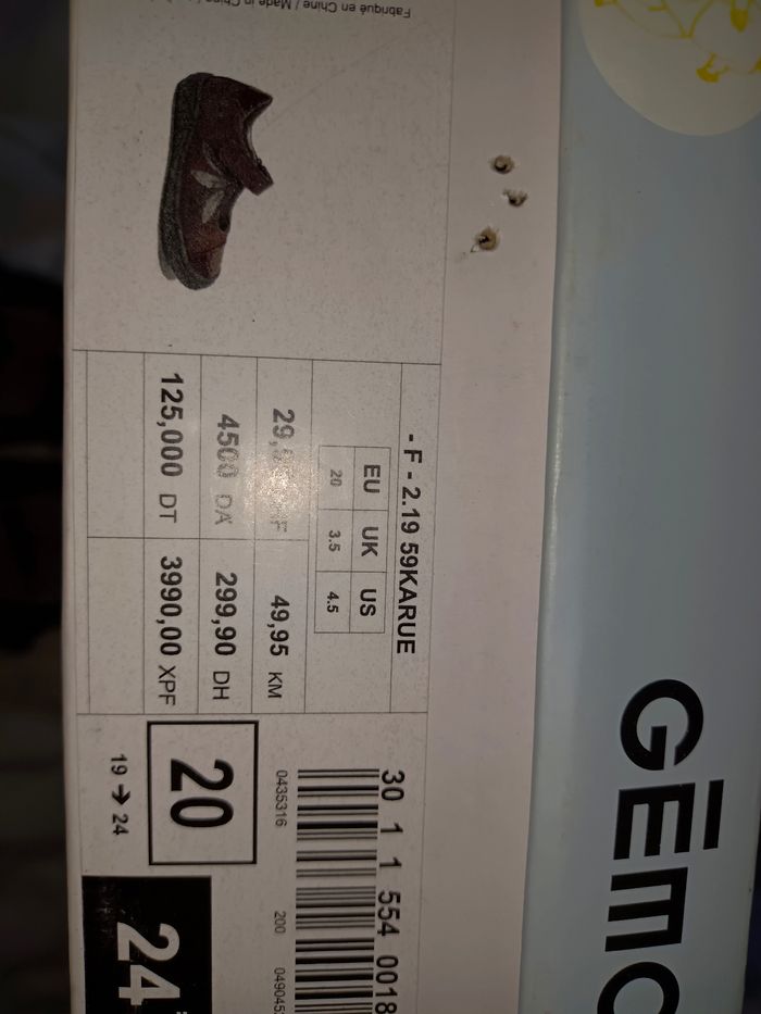 • Pointure20