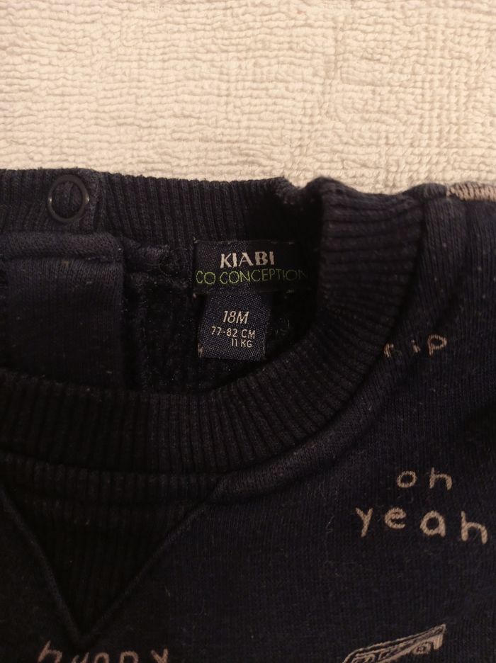 Pull pour garçon manches longues intérieur doudoune marque Kiabi taille 18 mois 77 82 cm bleu avec des petits cars en dessin - photo numéro 3