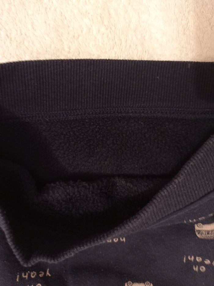 Pull pour garçon manches longues intérieur doudoune marque Kiabi taille 18 mois 77 82 cm bleu avec des petits cars en dessin - photo numéro 6