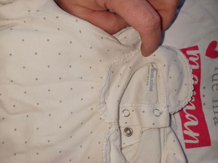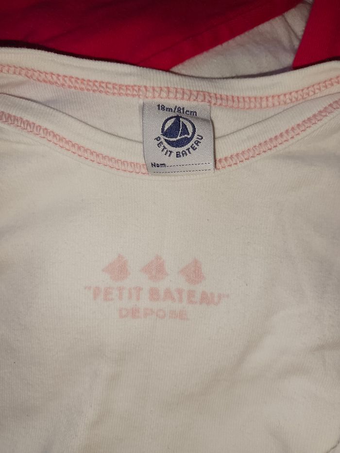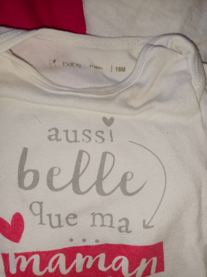 Lot cinq bodies manches longues Taille 18 mois/81 cm Triple pression entre jambe Grande encolure pour un enfilage facile Le rose fuchsia marque Super Baby Le blanc "aussi belle que ma maman" de chez Gémo Le crème et rose Petit Bateau Le crème à col et pois Vertbaudet (le seul avec trois boutons dans le dos) Le blanc/vert/rouge vient des USA marque Carter's noté 12 mois mais équivalent à un 18 mois/81 cm chez nous