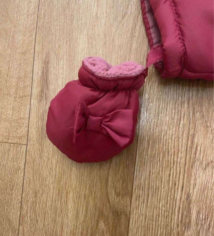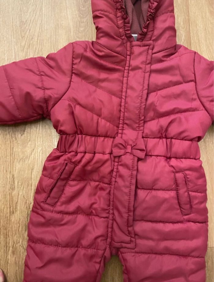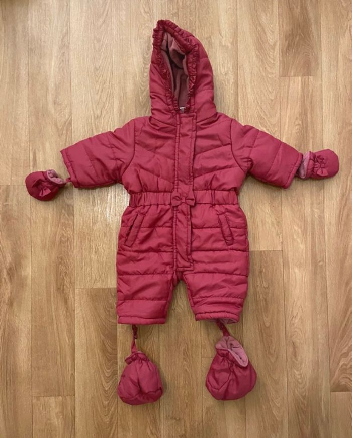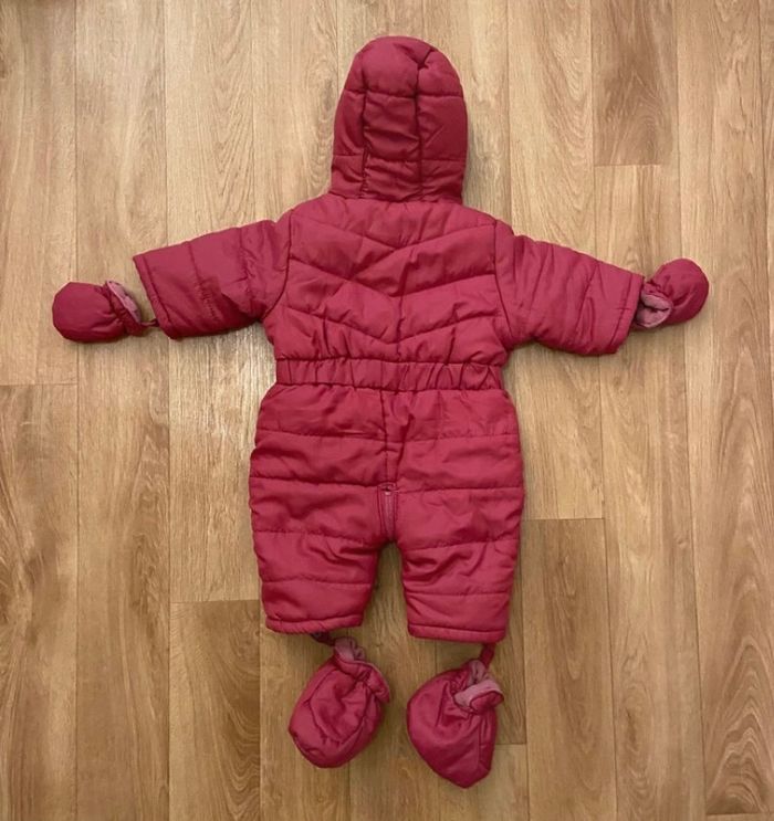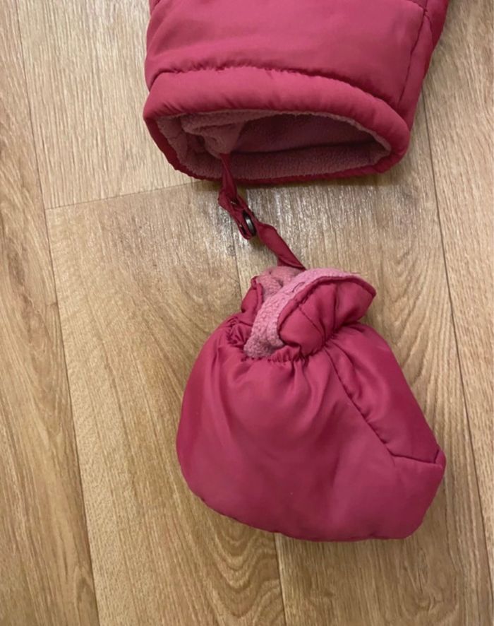 Je vends cette combinaison pour sortie fille 0-3 mois Intérieur polaire Extérieur imperméable Rose framboise Très pratique bon état Moufles et chaussons amovibles