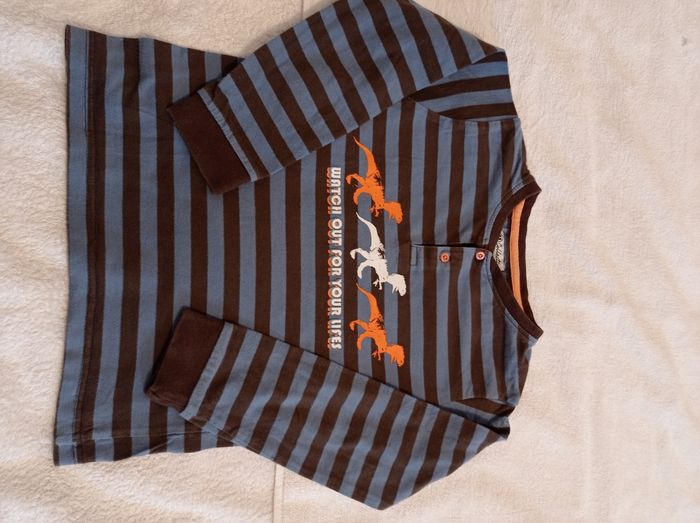 Collection  .U taille 6 ans pull manches longues rayé bleu rayé gris clair voir photos avec motif trois dinosaures - photo numéro 1