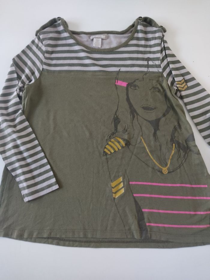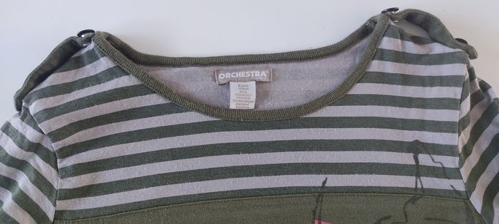Tunique kaki limite militaire au vu du motif Rayures kaki et grises sur le haut et les manches Taille notée : 8ans/128cm Marque : orchestra