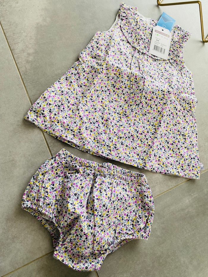 Robe fleure avec son bloomer assorti 6 mois sergent major neuf - photo numéro 1