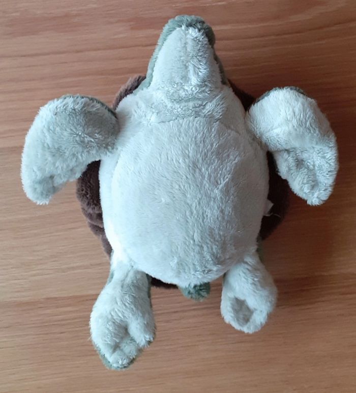 Adorable tortue marine en peluche très douce. N'a jamais servi de doudou. Marque inconnue car nous avions coupé l'étiquette. Largeur : 22 cm Longueur : 25 cm