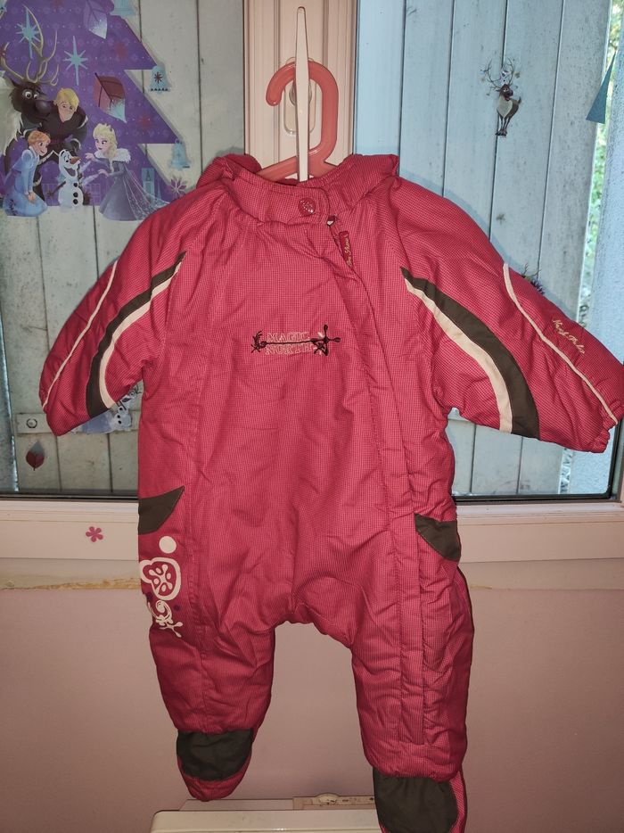 Très chaud tout en polaire à l'intérieur taille 12mois comme montré en photo une légère tâche sous un pied du au ski. Mais sinon état impeccable