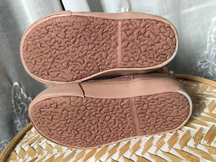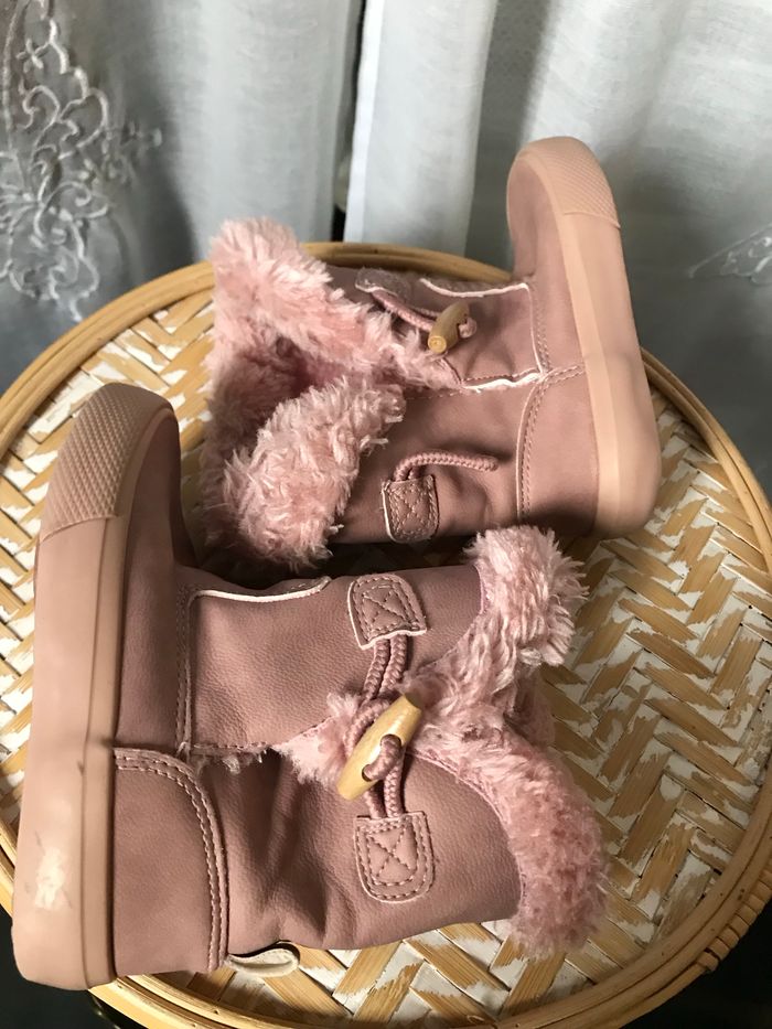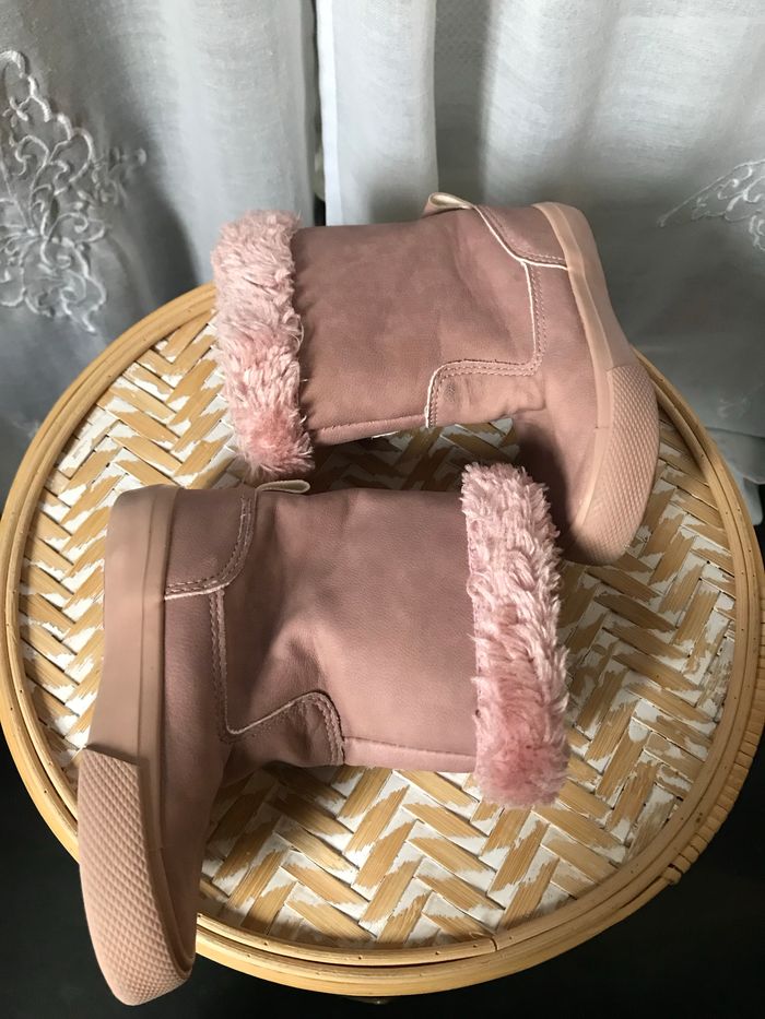 Jolies bottes rose poudré avec revers en fourrure rose également Entièrement fourrées Pointure 22 Tex A peine usées, bon état général