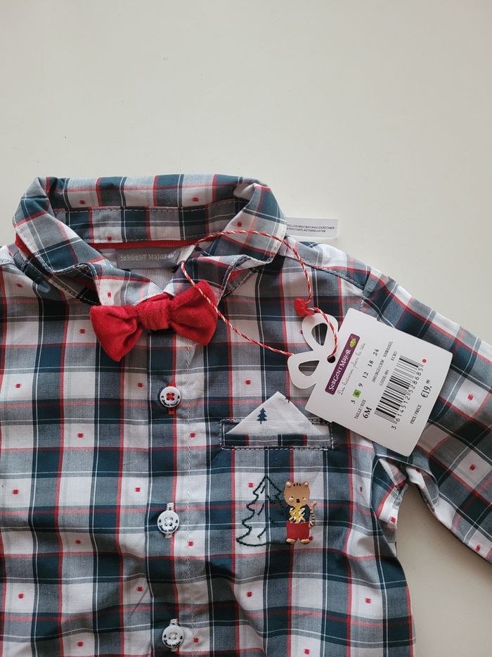 Chemise Noël manches longues Avec noeuf papillon rouge toucher velours Neuve jamais portée