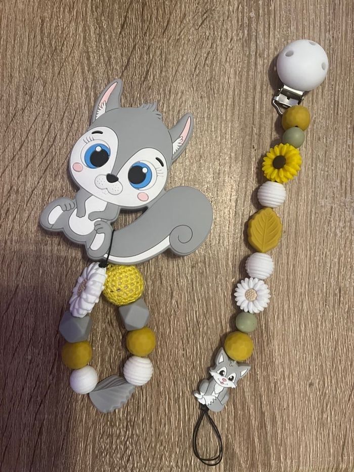 Ensemble Attache tétine et anneau de dentition personnalisé en silicone ou en bois au souhait de l’acheteur Possibilité de créer avec d’autre modèle ( Marie , mickey, roi lion , minnie , thème noël plein d’autres) n’hésitez pas à me demander et regarder mon dressing. Une photo vous sera envoyée avant l’expédition pour vous ayez un aperçu du rendu. Tous les produits sont réalisés avec du materiel spécial conçu aux bébés , enfants.