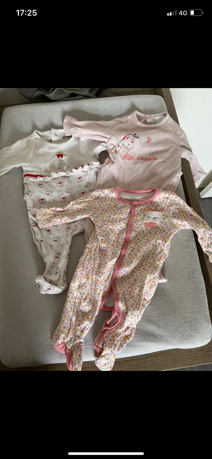 Vends lot pyjamas légers manches longues taille 3 mois (60-62cm). Très bon état. Un marque orchestra, un in extenso et un Manon et Valentin.