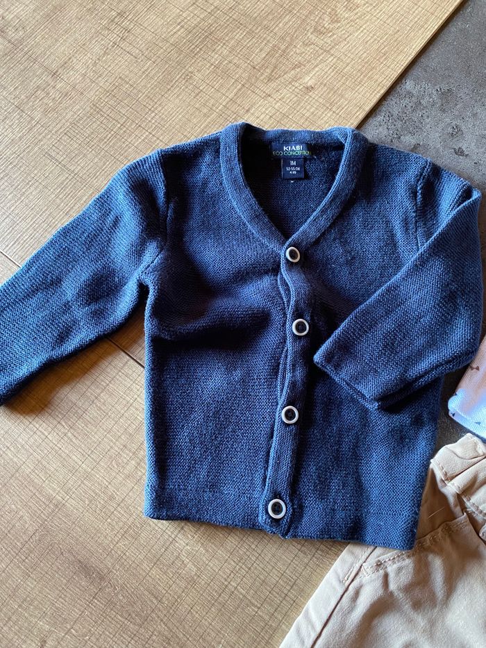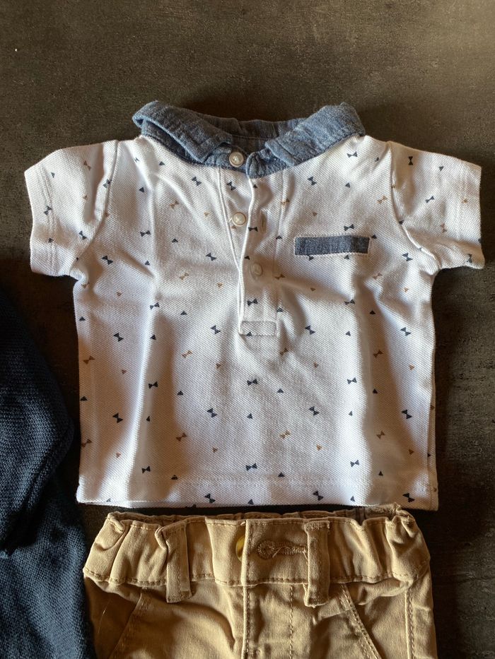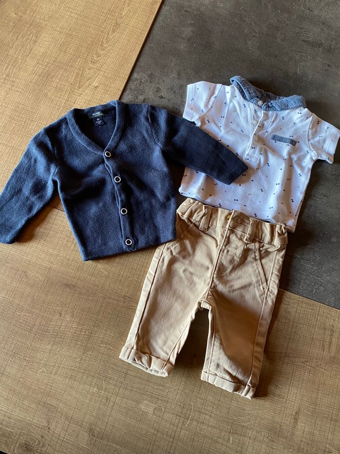 Ensemble 3 pièces : pantalon, polo et gilet Kiabi en parfait état. 9 mois. Les vêtements que je vends sont lavés