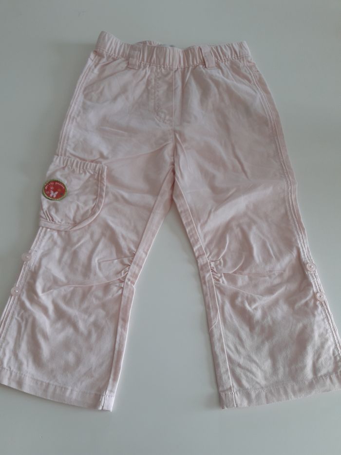 Pantalon fille 2 ans avec bouton pour faire un pantacourt
