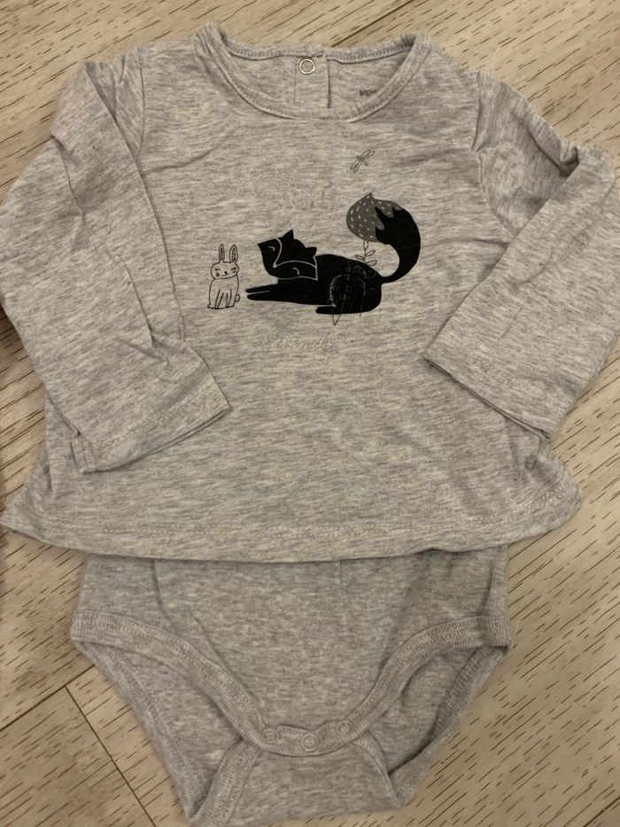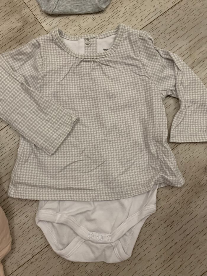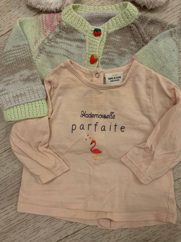Lot de vêtements 3/6 mois pour fille en très bon état : - 1 surpyjama bien chaud marque gemo en 3 mois 4€ - 2 bodies t-shirts integrés ii en 6 mois 2x2€ - 1 brassière faite main 3/6 mois 1€ - 1 t-shirt manches longues tape à l’œil 6 mois 1€