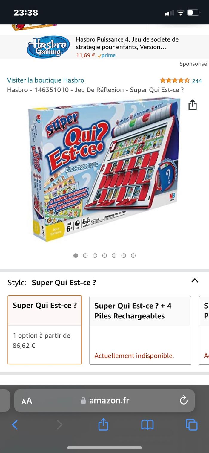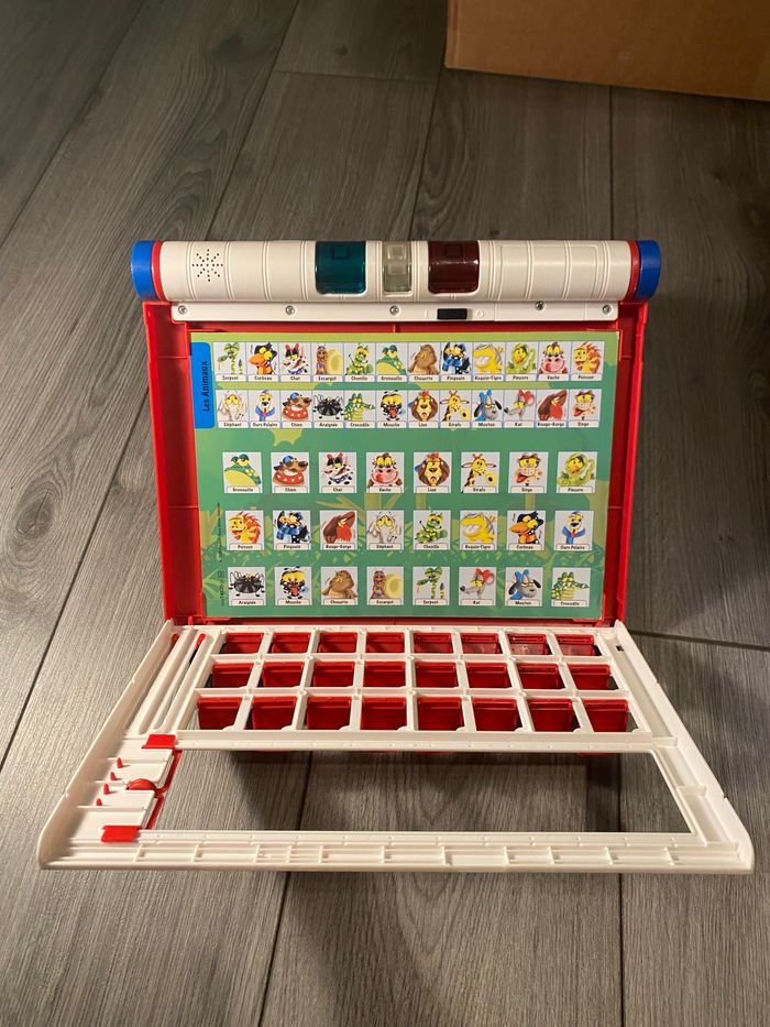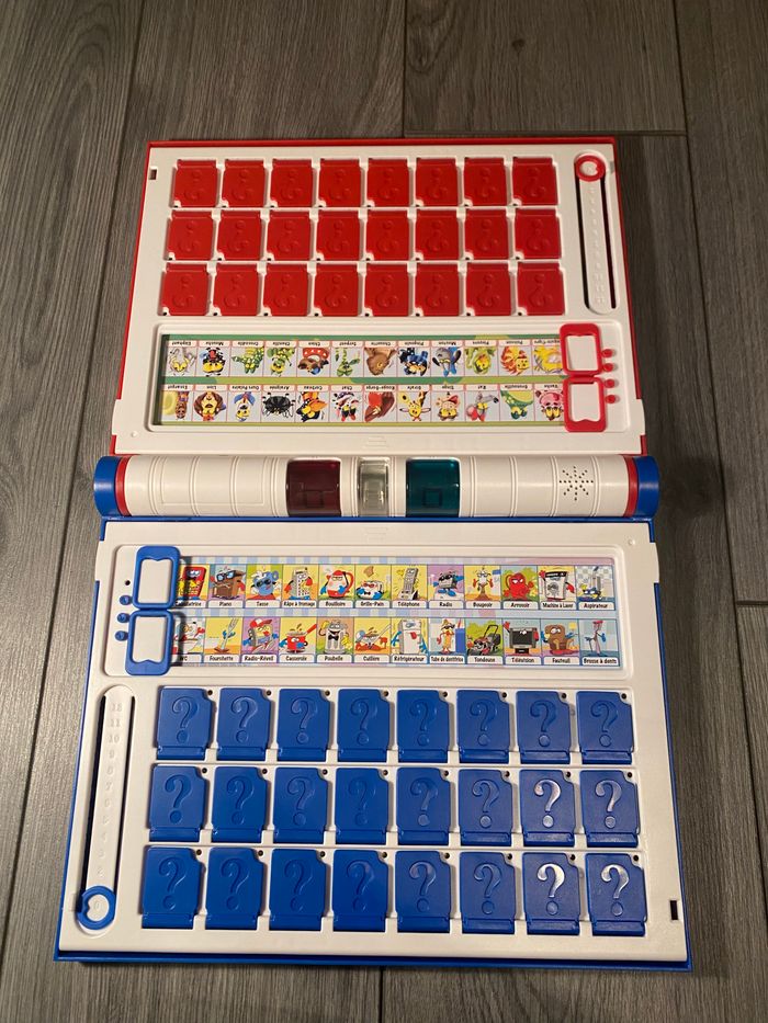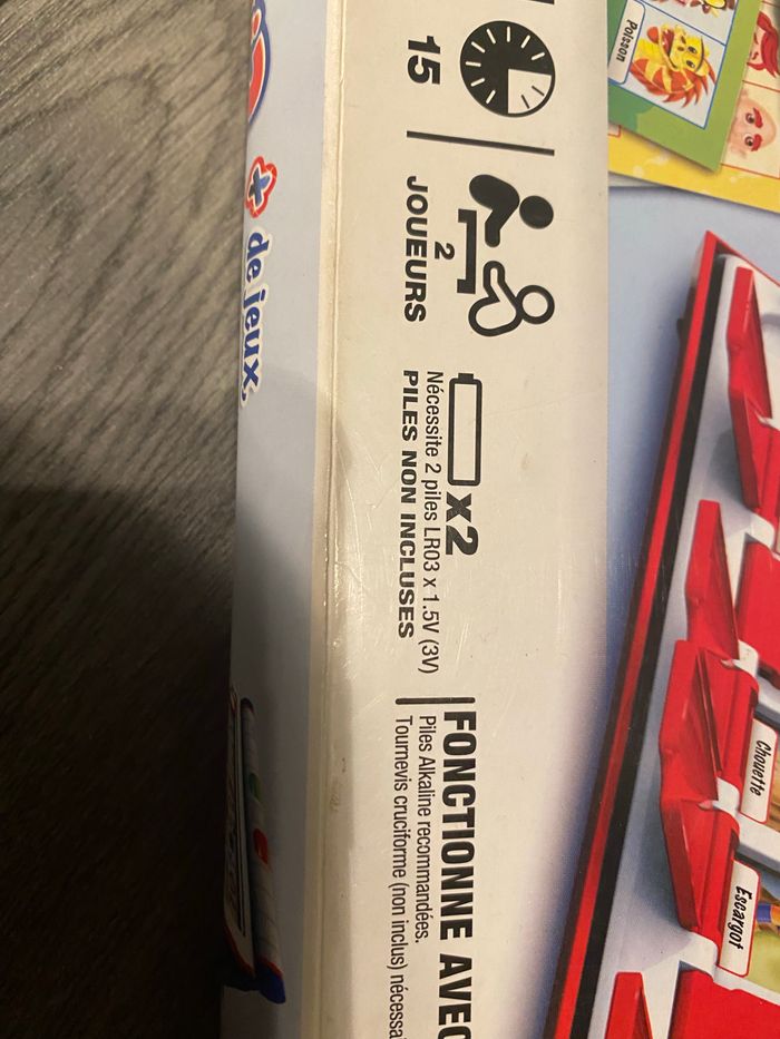 Cette nouvelle version du qui est-ce est superbe. Plus de personnages, et une forme différente. Cela fais toute la différence avec l’ancien. Très apprécié par moi même étant petite. Boîte très abîmé, oas le jeu est intacte. Il manque juste un petit pions bleu. Piles non fournies. Si vous avez des questions n’hésitez pas. Prix négociable.