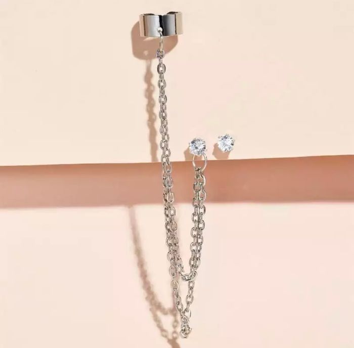 boucles d’oreilles manchette à chaîne deux couleur au choix - photo numéro 1