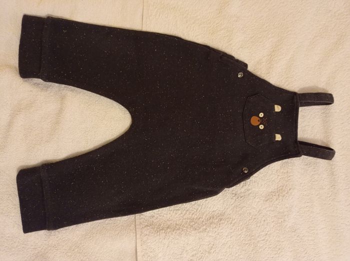 Marque Kiabi taille 12 mois 73 ..76 cm salopette noir noir grise avec des petites peloches blanches