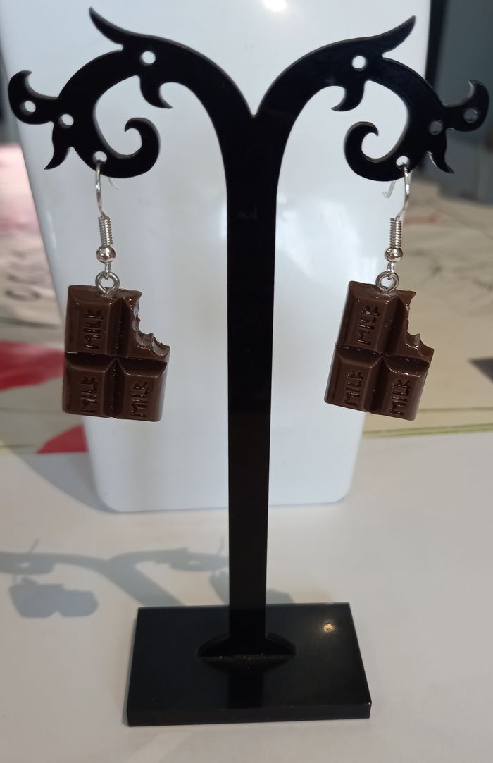 Boucles d'oreilles carré de chocolat - photo numéro 3
