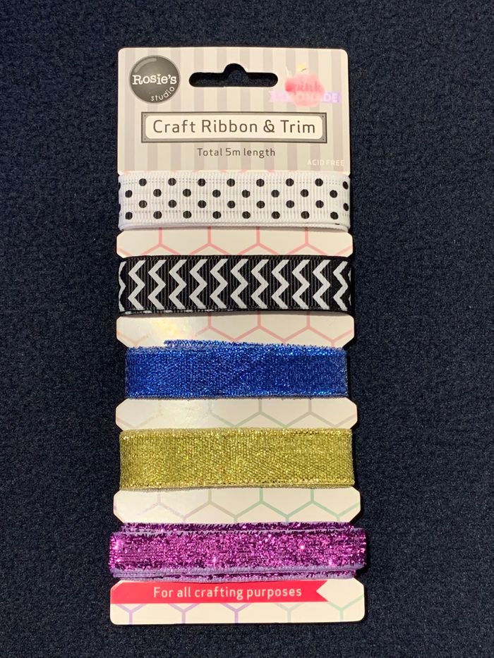 Rubans 5 différents motifs 1m chaqu'un En blister neufs Marque Rosie's Studio #scrapbooking #scrap #loisirscréatifs #ribbon #ruban