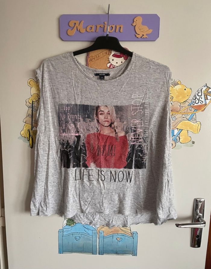 Tee shirt sans manches gris à motifs, taille 12 ans, marque Kiabi.