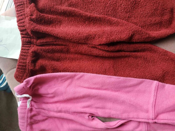 Lot de 2 pantalon 6 mois. Le legging rose, état porté et lavé plusieurs fois.kimadi. Le bordeaux, touché éponge, tbe.kiabi. #6mois_severinedubois40990