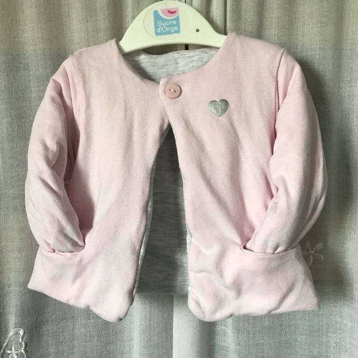 Gilet Veste ouatiné réversible Un côté rose Un côté gris Taille 3 mois Obaibi Parfait état