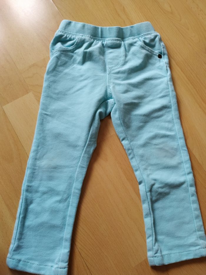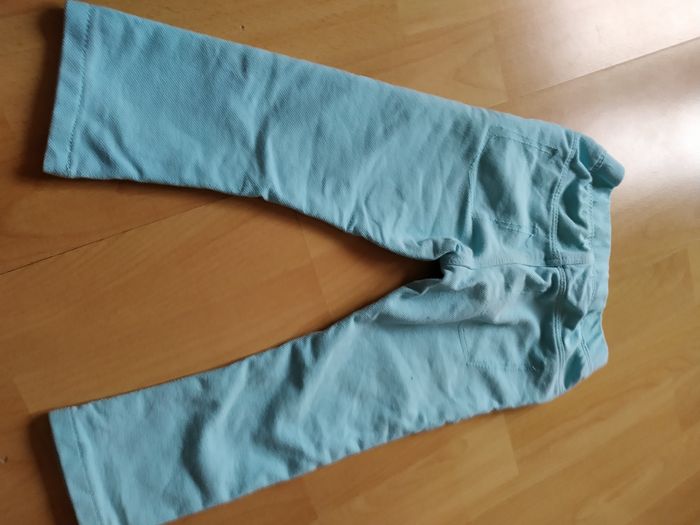 Pantalon de couleur vert clair, coton, poches sue le devant et taille élastique