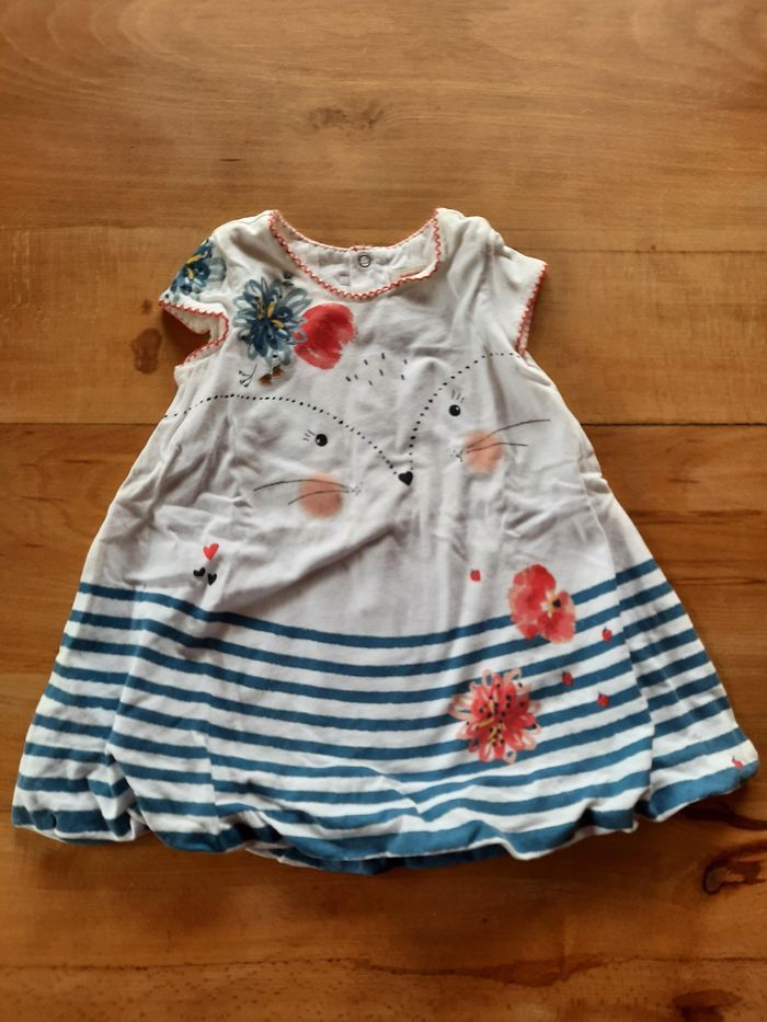 Robe Catimini en excellent état. Taille 18 mois/80 cm. Matière 100% coton. Fermée par pressions au dos.