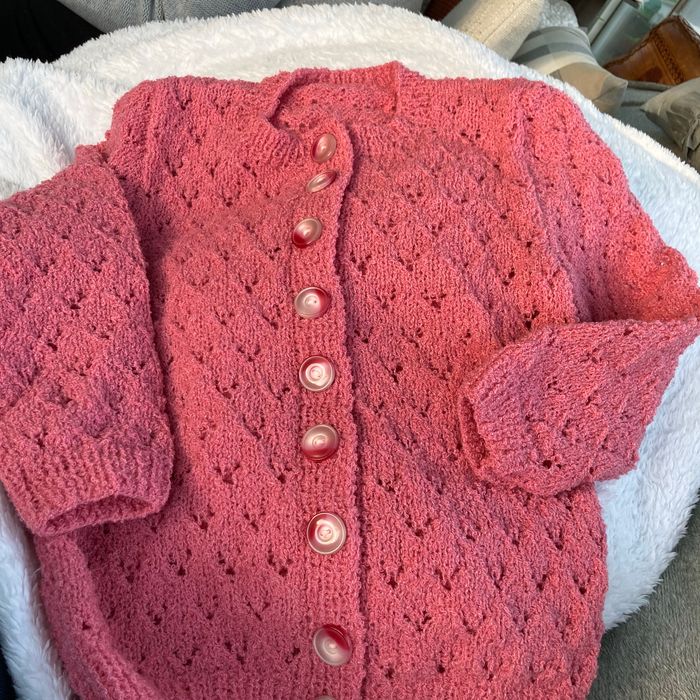 Gilet en laine rose fermé par des boutons Fait main avec des laines de qualité phildar 6 ans