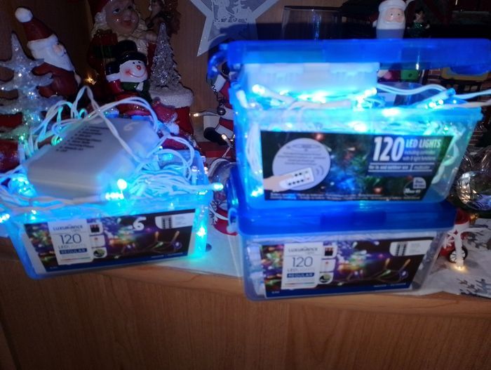 Guirlande de Noël où autres neuf 15€ pièce Fonctionne à piles. Avec 1 télécommande chacun et possible de tous les etiendre avec 1 seul télécommande 1 multicolore boîte neuf 2 multicolore TBE 1 blanche TBE