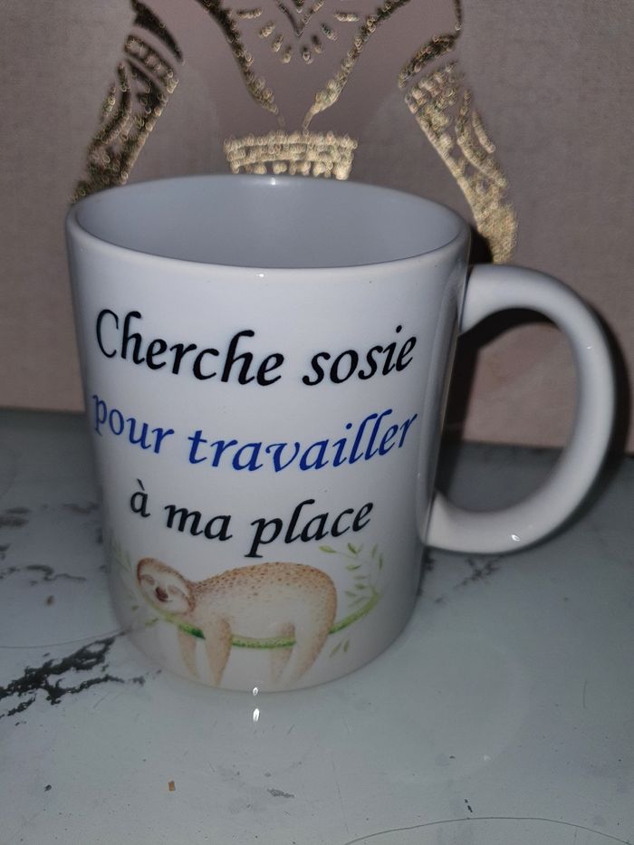 Mug humour chercher sosie pour travailler à ma place Privilégier shop2shop pour un envoi plus rapide