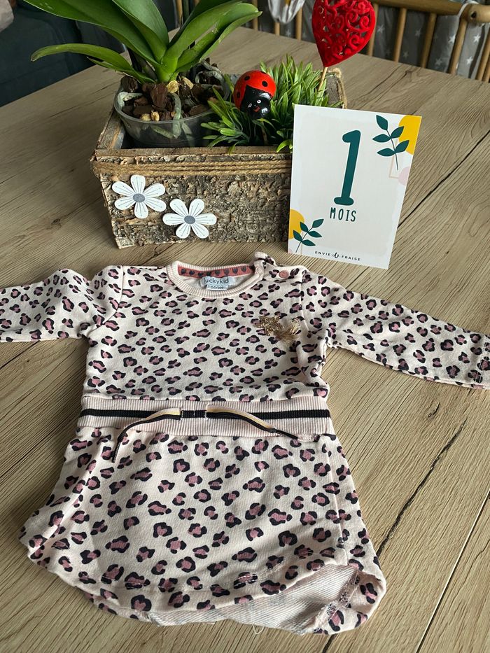 • Robe motif léopard bébé fille 🌺 • Marque : Luckykid • Taille : 1 mois • En très bon état • Envoi rapide et soigné 🌼