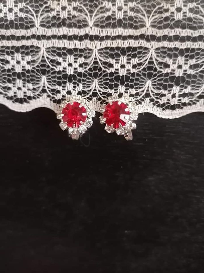 Boucles d'oreilles clip (sans trou) strass blancs et rouge jamais portées