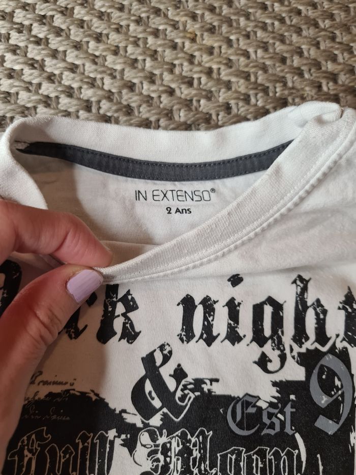 Lot de 4 t-shirts manches longues en bon état. Taille 24 mois - marque In extenso. 3 t-shirts avec boutons sur le col pour faciliter l'habillage. Pas de défauts