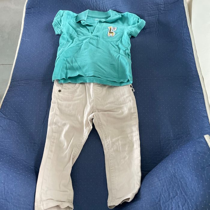 Ensemble pantalon blanc et polo bleu 18 mois Gemo Très bon état