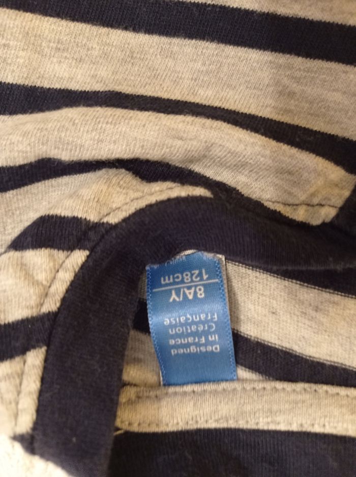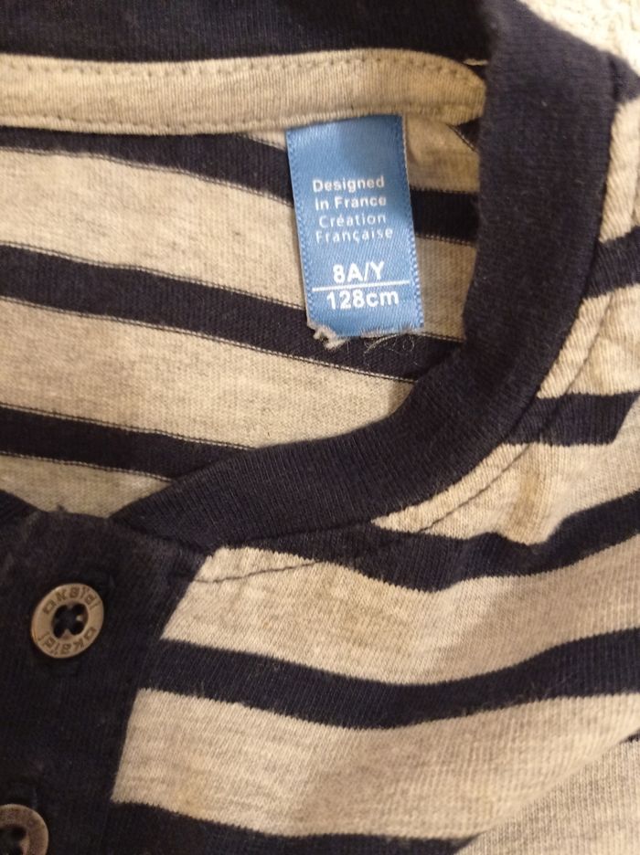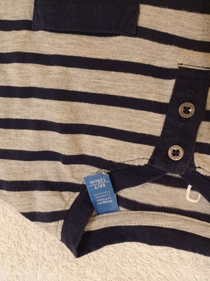 Pull pour garçon manches longues façon marin taille 8 ans 128 cm marque Okaïdi puis le manches longues avec pression devant très bon état porter trois fois petit pull habillé
