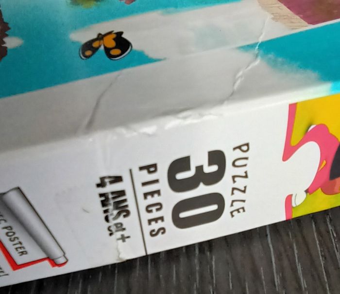 Puzzle complet mini loup 30 pièces pour les 4 ans et +. Poster à l'interieur pour s'aider. Boîte un petit peu abîmée et rescotchée comme montré sur la photo.