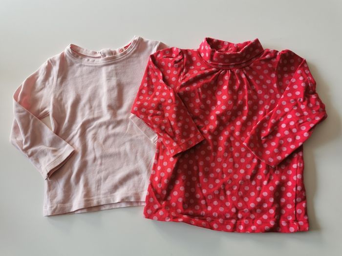 Ensemble de 2 t-shirt manches longues en excellent état. ✅T-shirt rose dpam tres peu porté ✅Tshirt rouge col roulé a pois parfait pour l'hiver orchestra