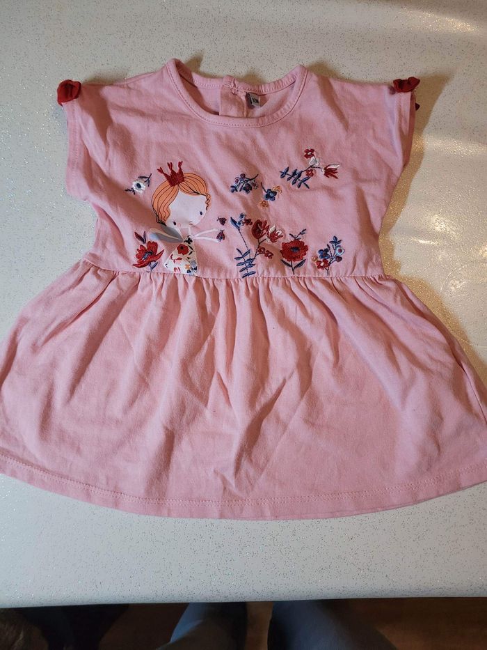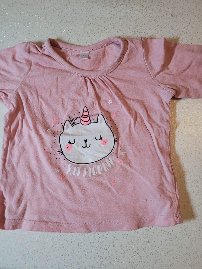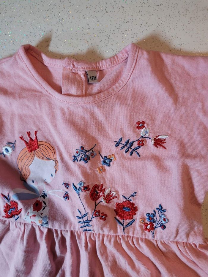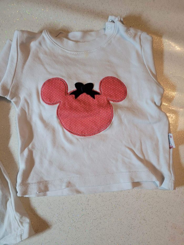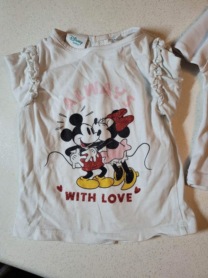 Pyj molletonné 9-12 mois 5 t-shirt manche longue dont 2 minnie + 1 t-shirt manche courts + une tunique rose manche courte en taille 12 mois