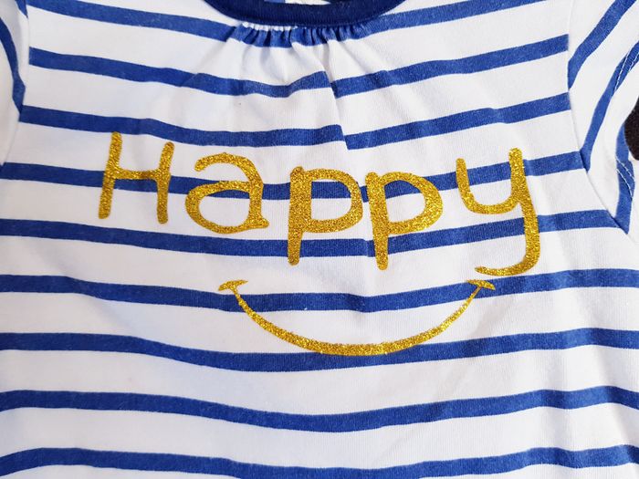 Robe rayée à manches courtes #kiabi avec inscription #happy sur le devant 👶 Taille : 6 mois ❌ Excellent état proche du neuf