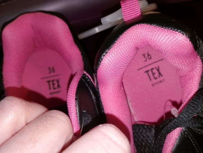 Basket de sport TEX neuve Noir avec un peu de blanc et de rose Pointure 36 Idéal cadeau anniversaire, Noël, Pâques, Sainte-Catherine.