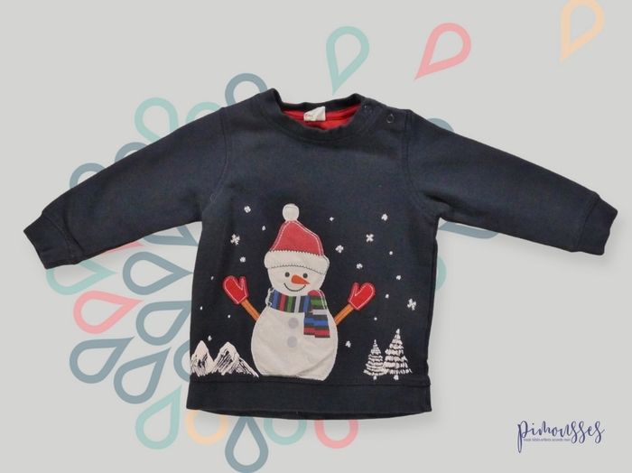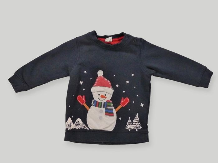Pull sweat fin molleton fin bleu marine bonhomme de neige H&M 6 – 9 mois 74 cm garçon - photo numéro 1