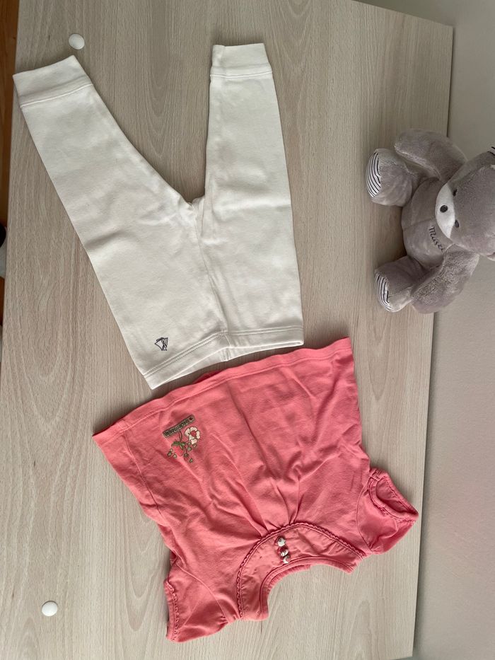 Ensemble 6 mois Legging blanc T shirt manches courtes rose Très bon état