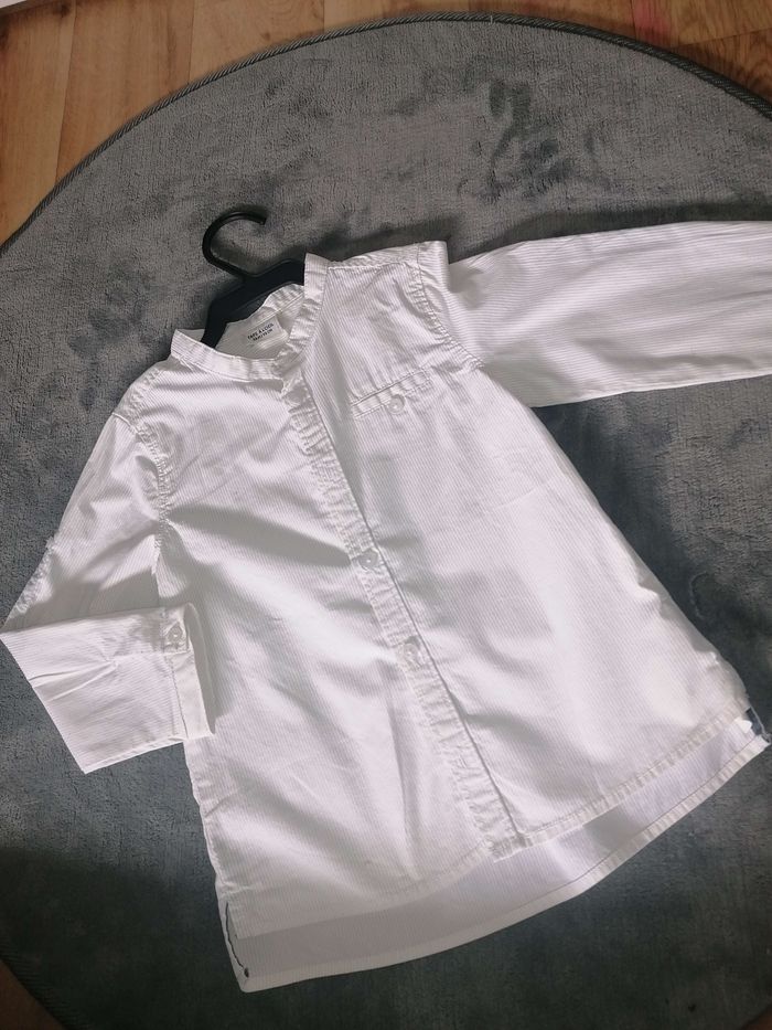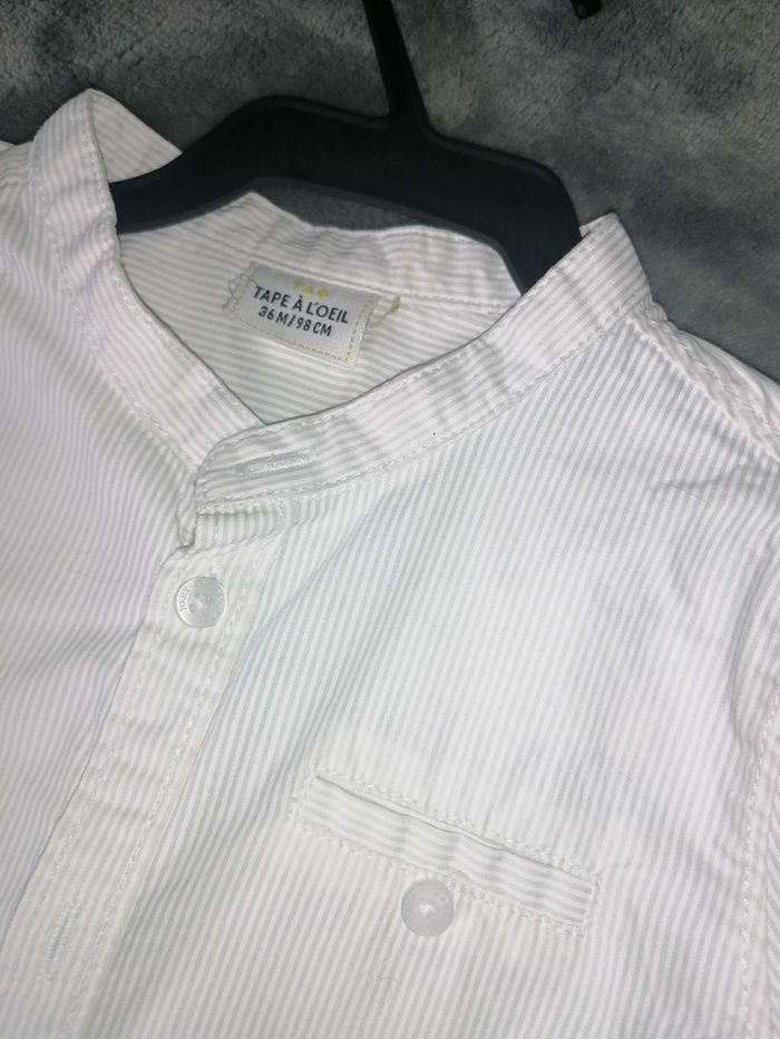 Bonjour je vends cet jolie chemise taille 36 mois 3 ans Col Mao couleur blanche vient de chez tape à l œil