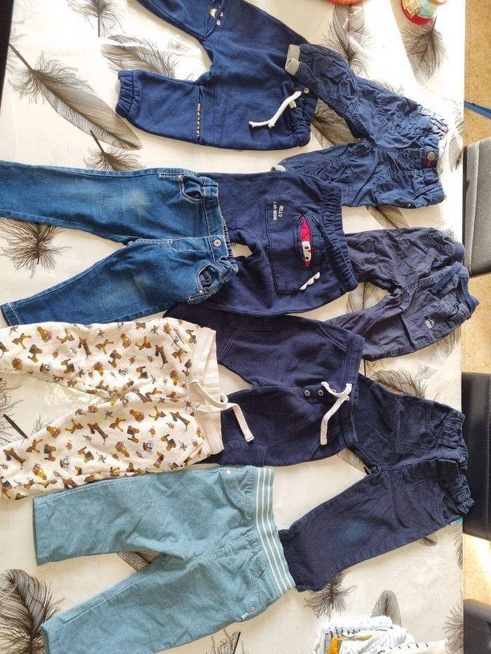 Lots garçon taille 12 mois 6 ensembles Une dizaine de pantalons Une vingtaine de pulls Possibilité de certaines affaires tachée mes aussi certaines neuves n'hésitez pas à me demander plus de détails. Beaucoup de marque différentes obaibi kiabi zara sincère orchestra... Cadeau 🎁 dans le colis envoie rapide .