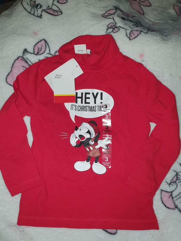 Tshirt col roulé Sous pull Disney Mickey Noël 3 ans neuf