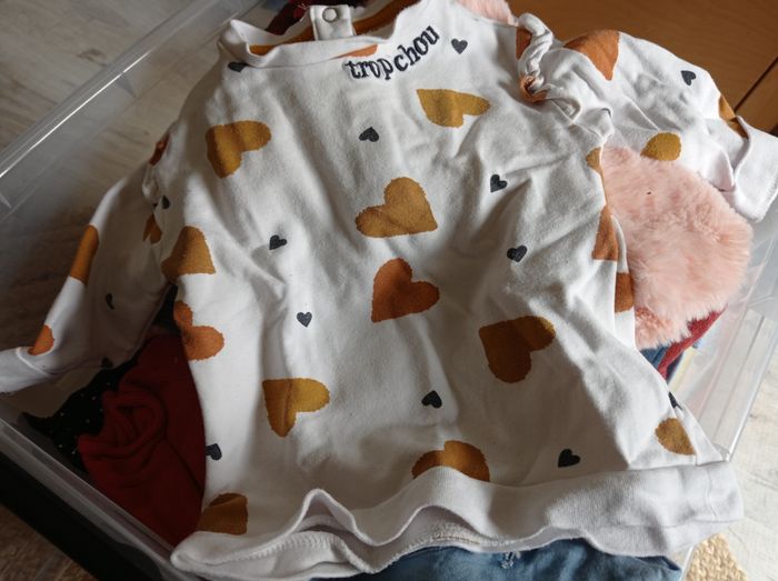 Gros lot de vêtement 3 mois fille. Jean, legging, gilet, pull, t-shirt, salopette .. Comprend aussi une gigoteuse + 1 manteau combinaison. Plus de 50 pièces Je rajoute dans le lot 2 paires de chaussures.