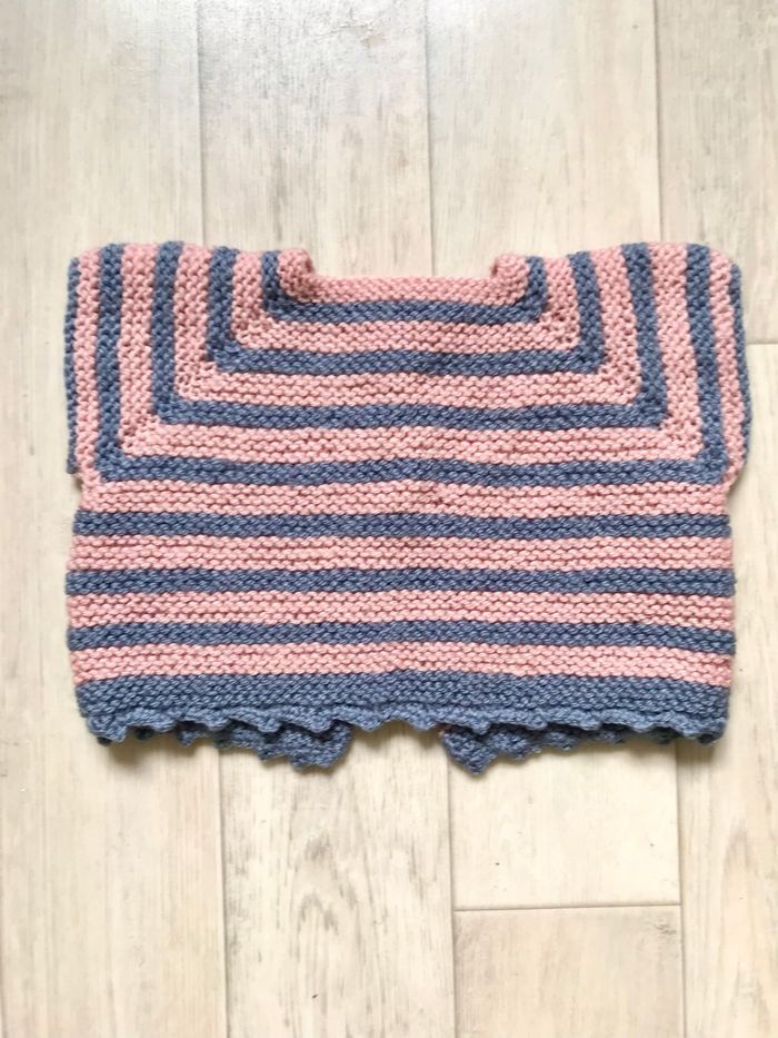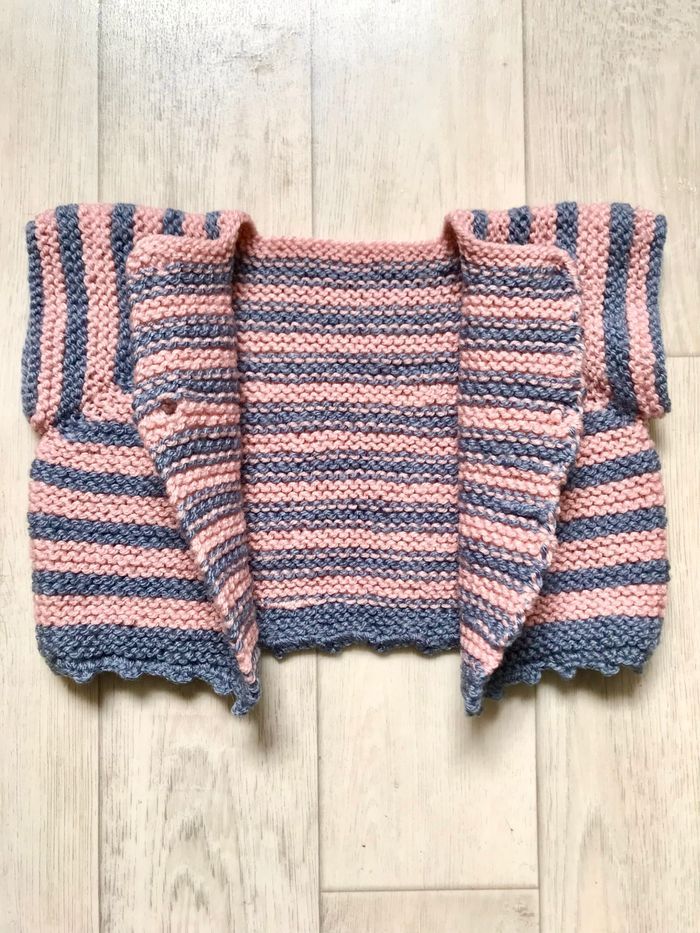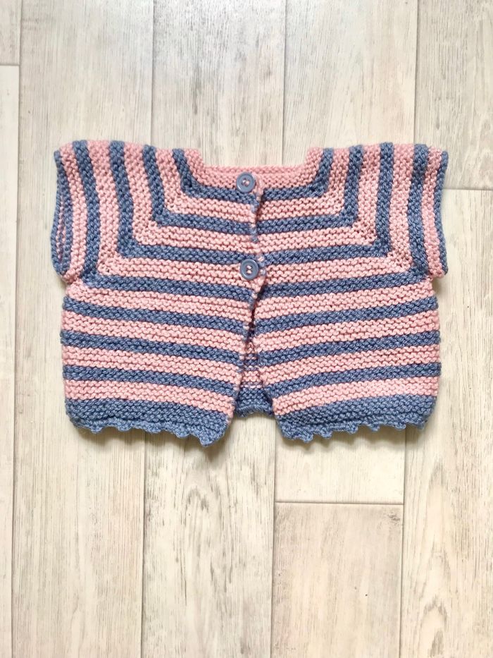 Gilet court en laine à manches courtes Rayures roses et violettes Boutons à l’avant
