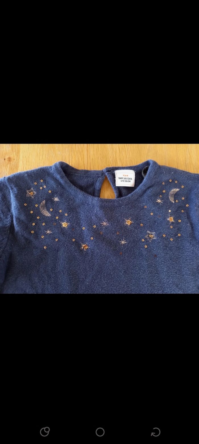 Robe pull bleu tape à l'œil motifs dorés en haut de la robe. A été porté reste en très bon état